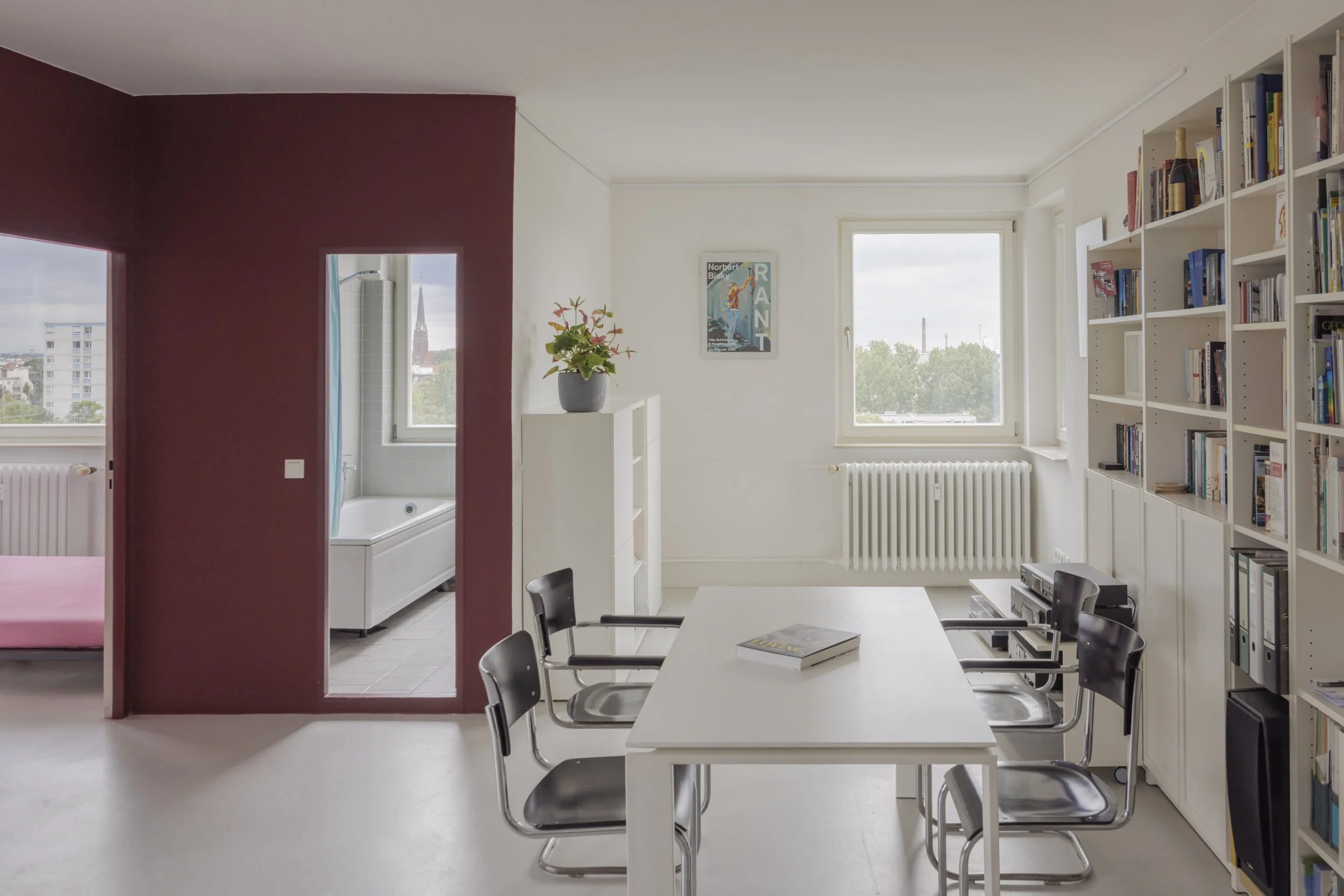 Wer Raum und Geschichte sucht, findet beides in dieser besonderen 2-Zimmer-Wohnung mit 72,28 m² Wohnfläche. Das Gebäude wurde 1957 im Rahmen der Internationalen Bauausstellung von Architekt Gustav Hassenpflug entworfen – als Teil eines visionären Stadtkonzepts für modernes, offenes und luftiges Wohnen.