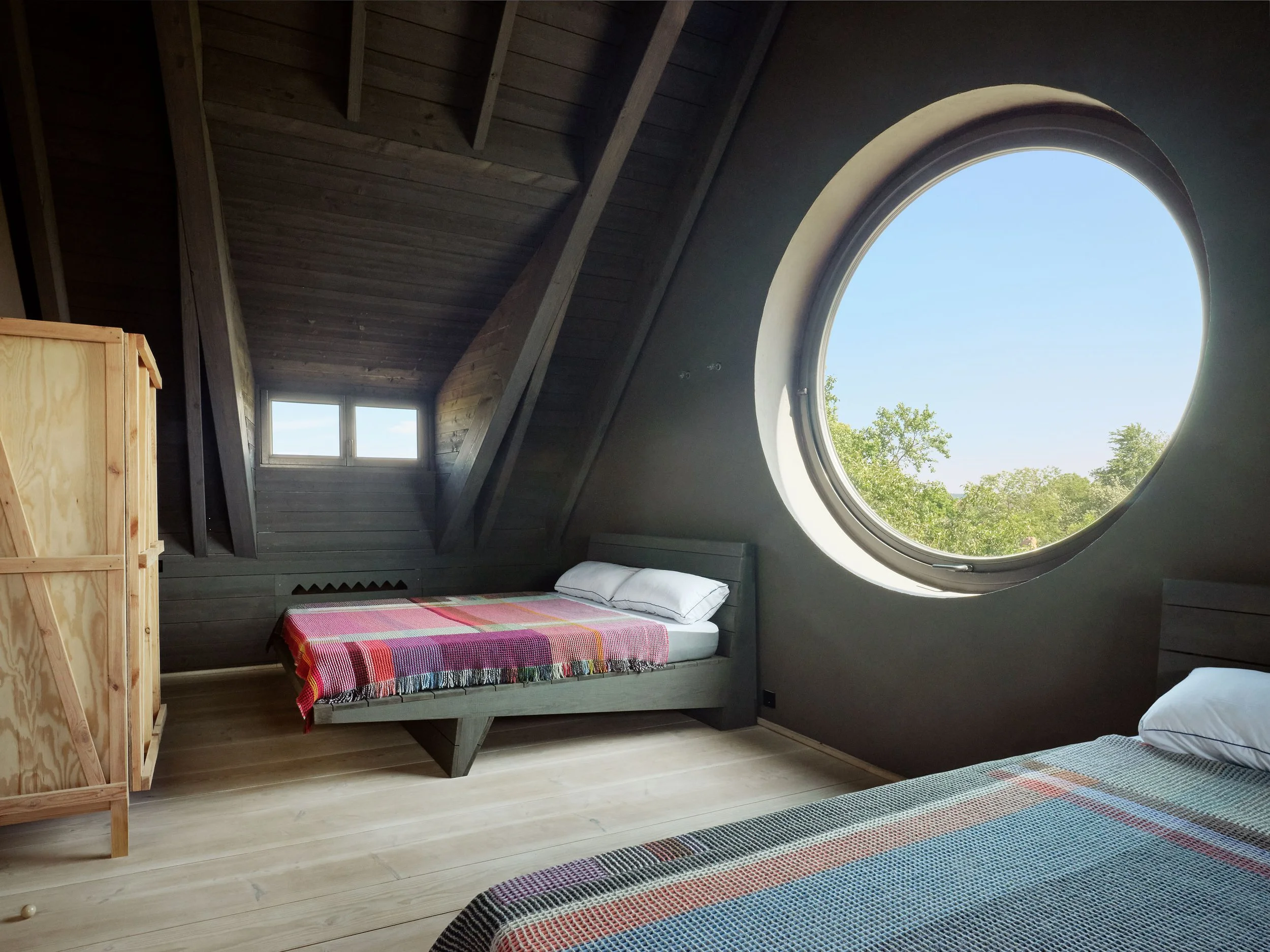 Im westlichen Teil des Hauses befindet sich ein Schlaf- und Arbeitszimmer mit Blick auf den Obstgarten. Zwei weitere Schlafzimmer im Dachgeschoss, jedes mit eigenem WC und Waschtisch, bieten zusätzlichen Komfort und Privatsphäre.