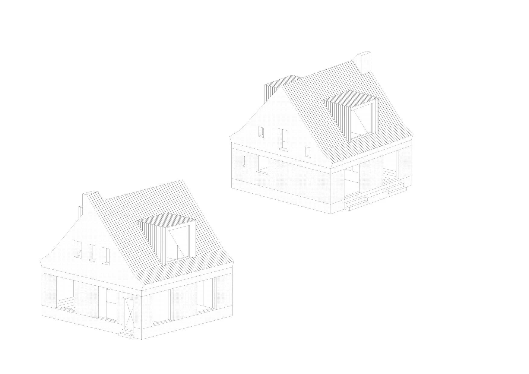 Das Haus ist ein Entwurf des Berliner Architekten Thomas Kröger. Der Name leitet sich von der Hausnummer ab und bezieht sich auf das eher kleine Volumen dieses klassischen Siedlungshauses aus den 1950er-Jahren. Das kleine Haus mit seinem quadratischen Grundriss und dem Satteldach steht am ausgedünnten Ende der Ortschaft Lindenhagen und befindet sich hier fast schon allein in der Landschaft. Die Fassade wurde rhythmisch mit großen Fensterfeldern zur Landschaft hin geöffnet. Dadurch entstand eine neue Gliederung der Fassadenflächen. Unterstrichen wird diese durch vertikal orientierte Putzfelder, die mit den großen Fenstern umlaufend auf gleicher Höhe abschließen. Zum Ort hin bleibt die Giebelfassade bescheiden: Sie wurde weitgehend im Original belassen, die notwendigen Fenster sind locker über die Fläche verteilt. Das Dach wurde durch zwei große Gauben ergänzt. Seine eigentliche Überraschung entfaltet das kleine Volumen im Innenraum: Das Erdgeschoss präsentiert sich großzügig als ein zusammenhängender Raum. Zum Garten hin öffnet sich die Fassade pavillonartig. Zur Straßenseite sind die Öffnungen den Funktionsbereichen Entrée, Garderobe und Bad zugeordnet. Zur Landschaft orientiert liegt der etwas tiefer gelegene Kaminbereich mit seiner gemütlichen Sitzlandschaft. Leicht erhöht dahinter befindet sich der Essbereich mit der offenen, großzügigen Küche. Im ersten Stock befinden sich ein Gästebad sowie in den beiden Gaubenzimmern jeweils ein Schlafzimmer. Im hinteren Bereich endet der dachhohe Flur in einem großzügigen Familienschlafzimmer.