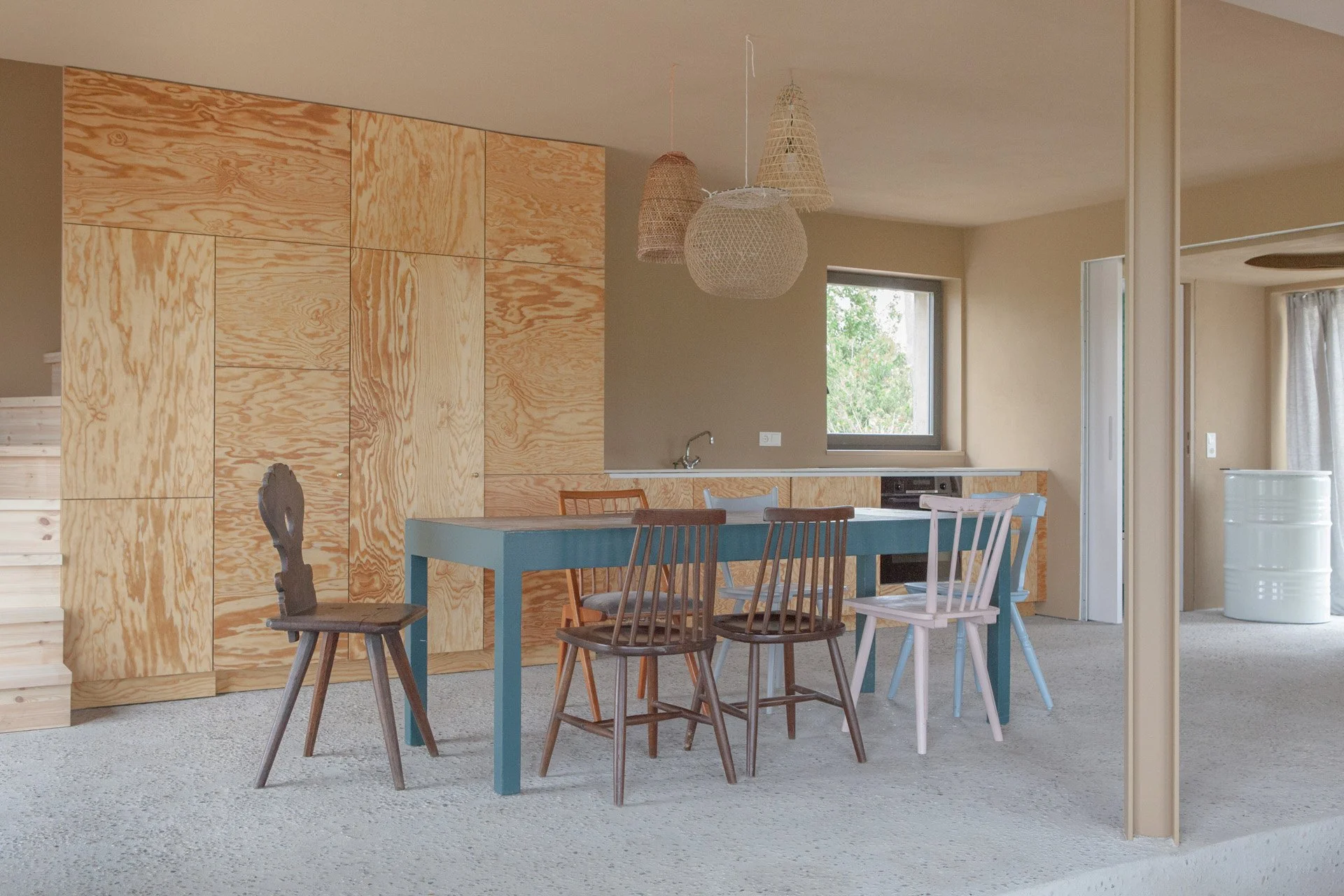 ⬘ Gewaschene Betonböden und Holzoberflächen