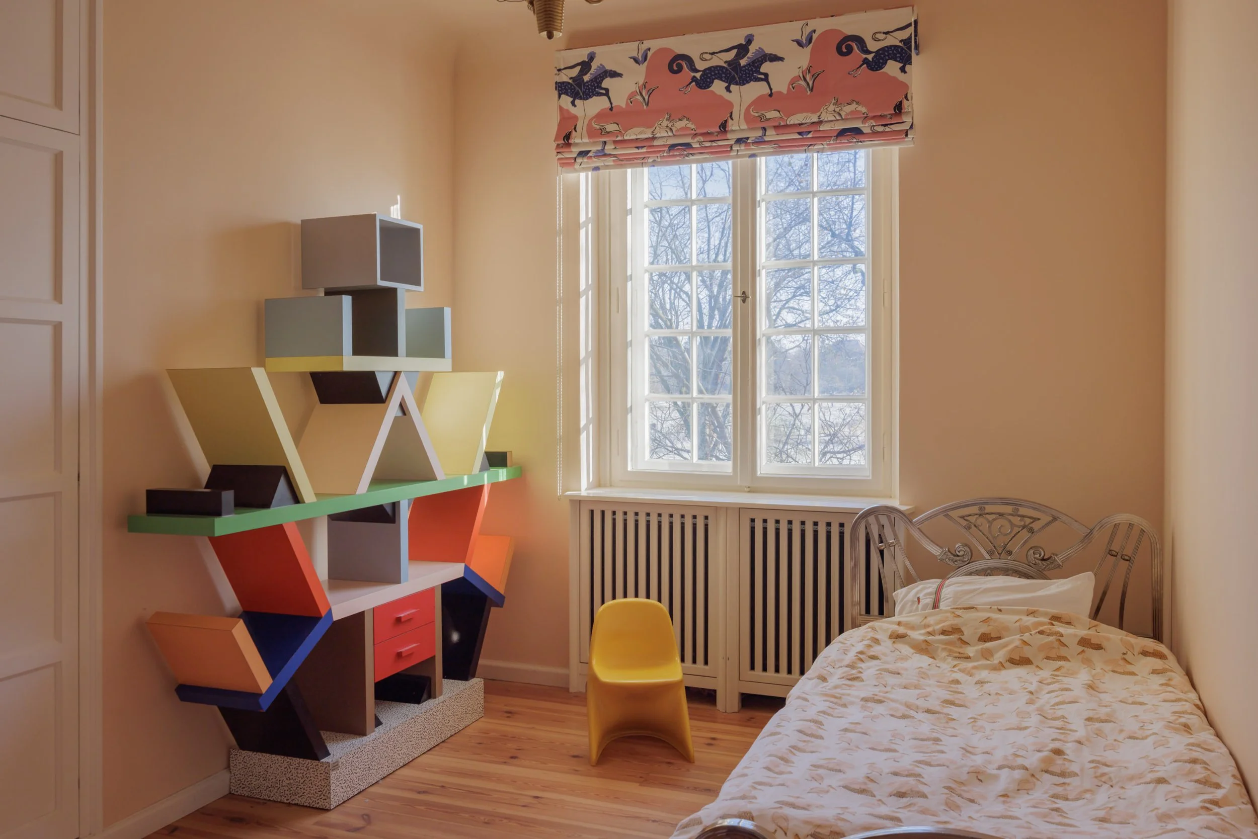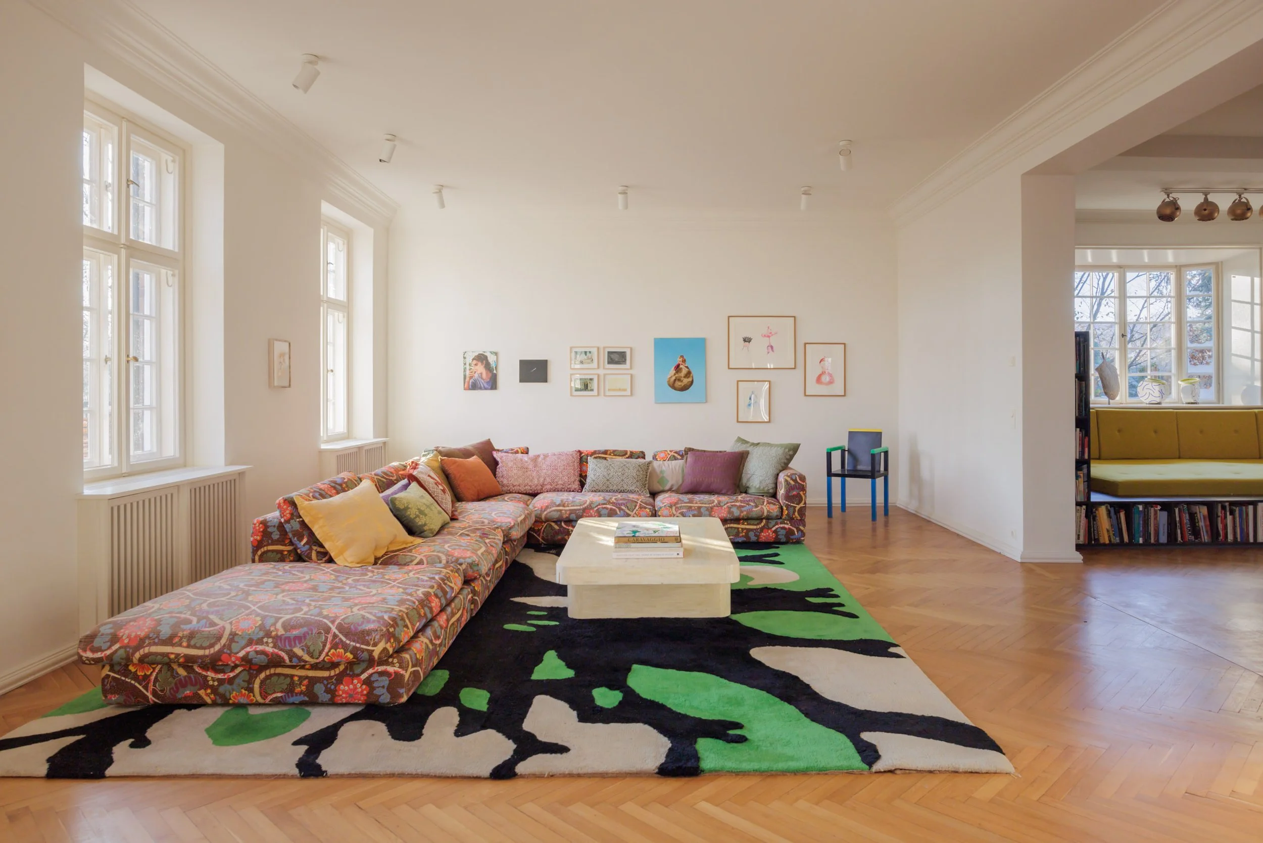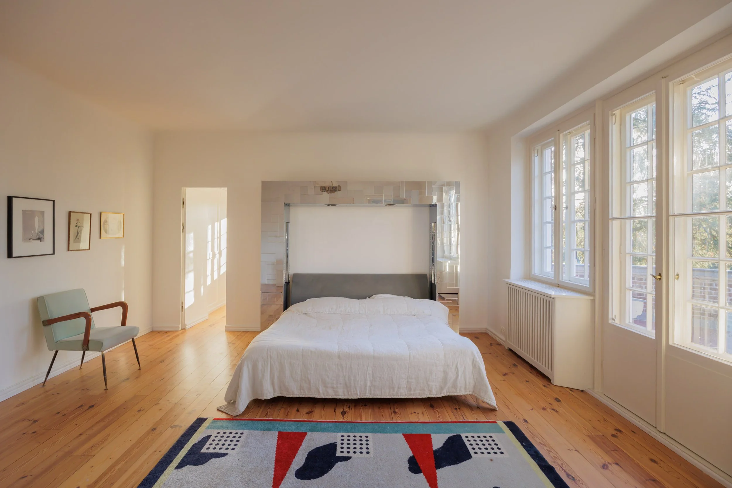 ⬘ Original, nailed oak parquet flooring in the living area, and custom-fitted